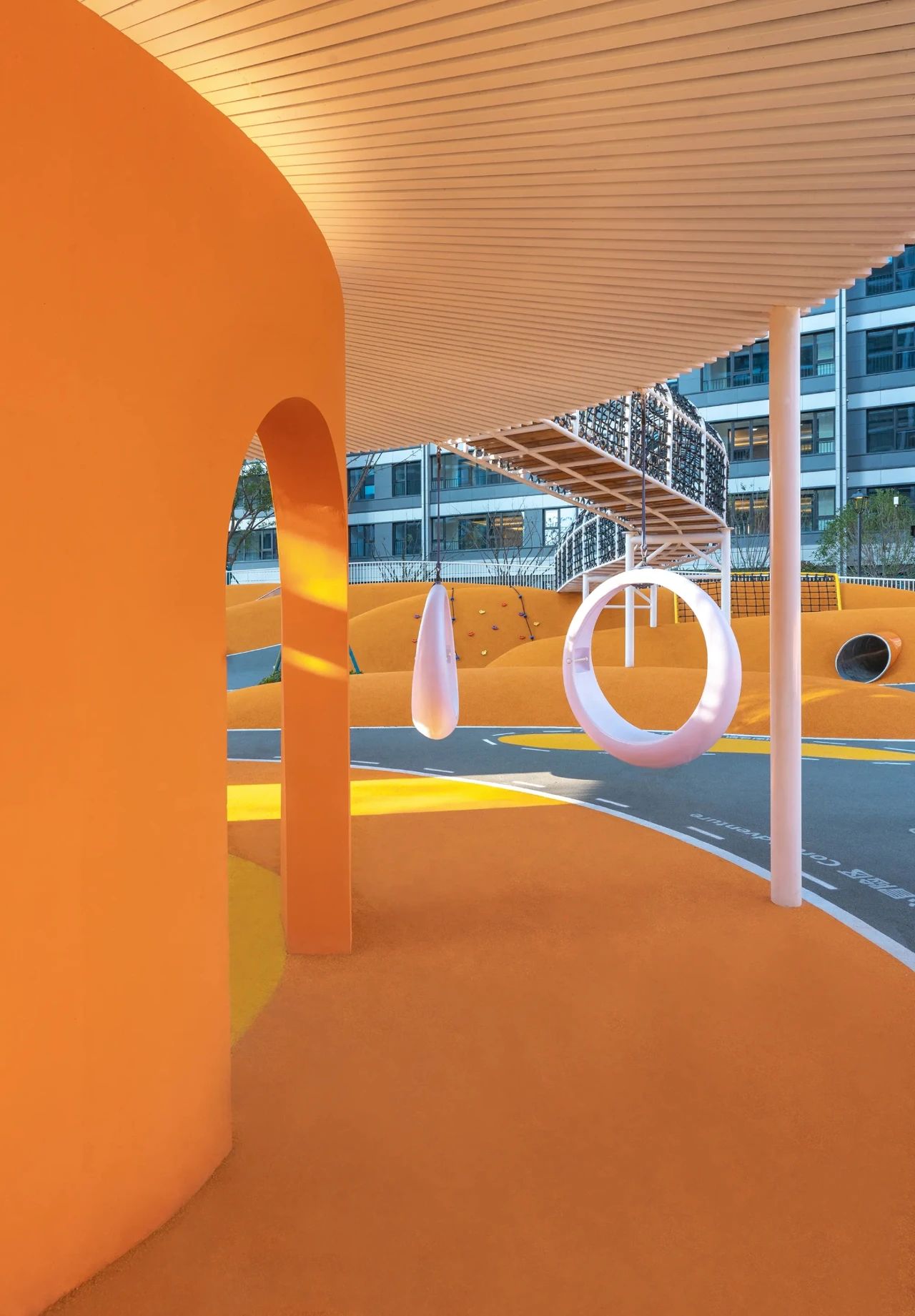 ▽連接場(chǎng)地的空中廊橋讓游玩空間充滿更多趣味